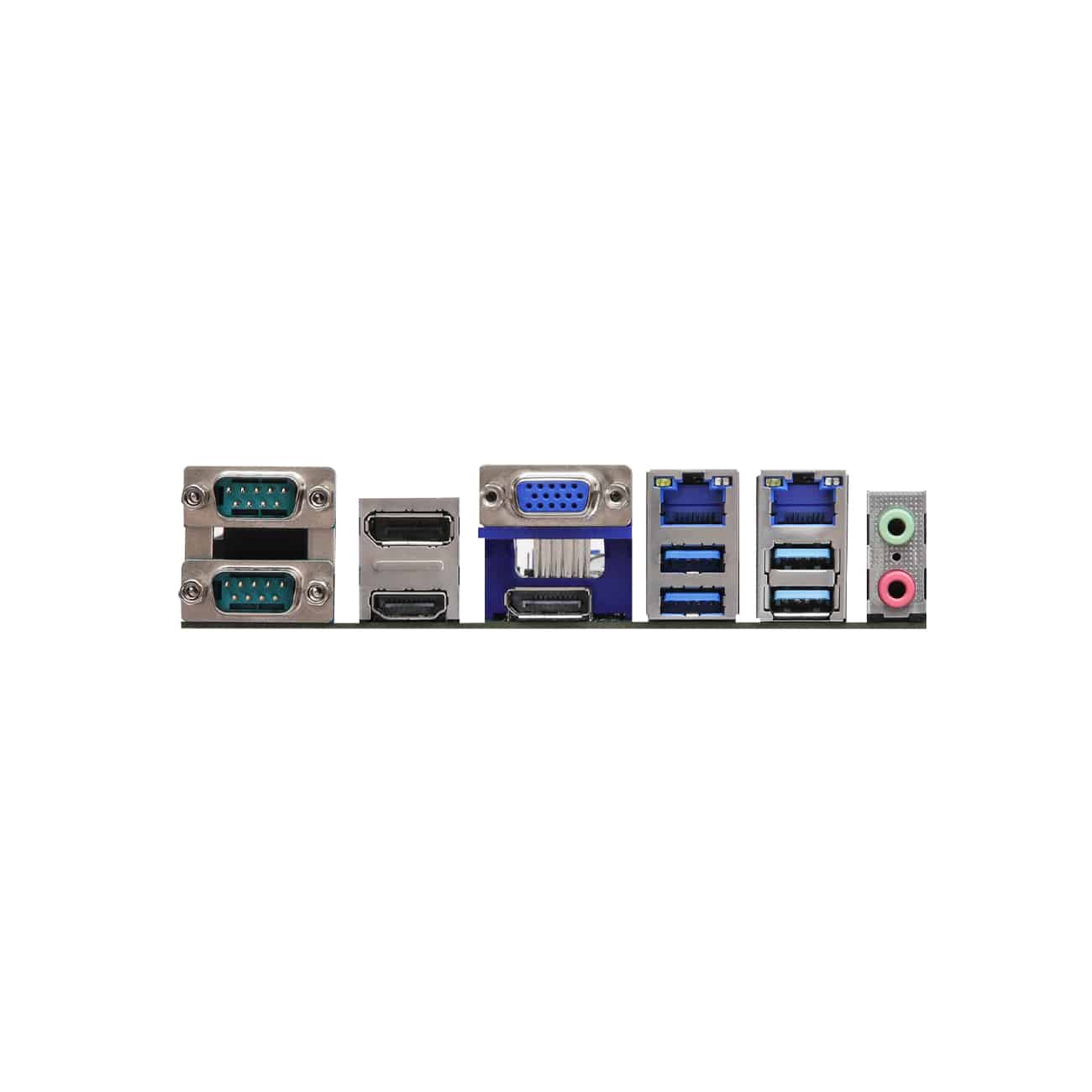 - 1 x PCIe x16 (Gen4), 4 x USB 3.2 Gen2, 2 x USB 3.2 Gen1, 4 x USB 2.0, 1 x M.2 Key B, 1 x M.2 Key E, 2 x M.2 Key M, 5 x COM, 4 x SATA3